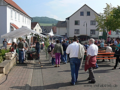 Mit frischem Wind und Unterstützung durch die Gemeinde Hilders und den Landkreis Fulda wird nun die Traditionsveranstaltung „Rhöner Viehabtrieb“ nach einem Jahr Pause zum 22. mal von der Vereinsgemeinschaft durchgeführt. Die Vereinsgemeinschaft fühlt sich der hiesigen Tradition verpflichtet und hat alles wieder bestens organisiert. Die Besucher und Gäste finden am Ortsrand genügend Parkplätze. In den Gaststätten und am Dorfplatz wird zu einem vielseitigen Mittagstisch eingeladen. In der Cafe-Scheune laden die Mütter des Kindergartenvereins und die Frauen der Kfd zu einer großen Auswahl an Torten und Kuchen ein. Für Familien und Kinder ist in einem Obstgarten viel Platz zum Spielen. Auch in dem Streichelzoo mit Haus- und Nutztieren werden die Kinder viel Spaß haben. Rund um den Dorfplatz werden an den Ständen heimische Produkte angeboten, auch Handwerker zeigen ihr Können. Für Unterhaltung sorgen ebenfalls verschiedene Gesangs- und Folkloregruppen.